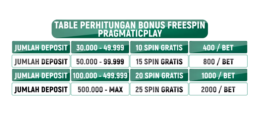 > Berikut ini merupakan cara perhitungan bonus Freespin: